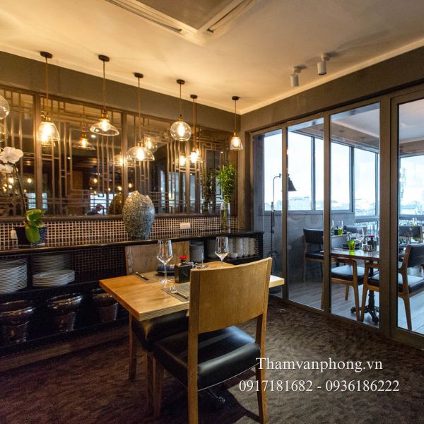 Văn phòng công ty, nơi cần sự yên tĩnh, chuyên nghiệp và dễ bảo trì. Khách sạn, nhà hàng với yêu cầu cao về thẩm mỹ và độ bền. Trung tâm thương mại, showroom, khu vực sảnh chờ có mật độ người qua lại lớn. Trường học, thư viện hoặc các không gian công cộng cần giảm ồn và tăng độ an toàn.